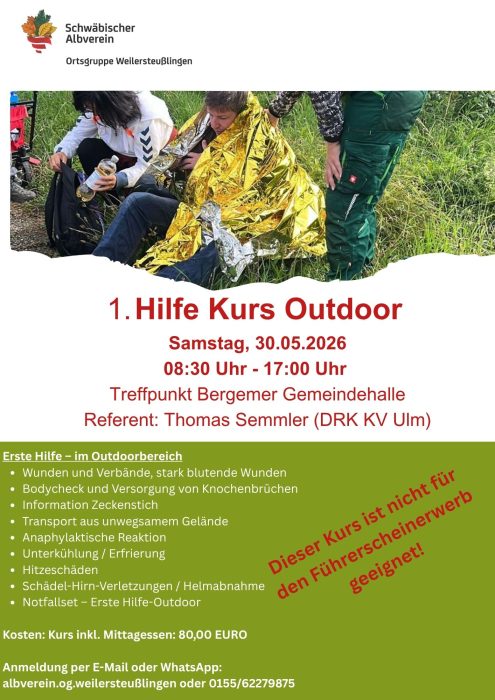 Veröffentlicht am 23. März 2026 von Christina Heilig Jetzt noch schnell zu unserem Erste-Hilfe Kurs Outdoor anmelden Hier geht´s direkt zur Anmeldung für unseren Outdoor Erste-Hilfe-Kurs